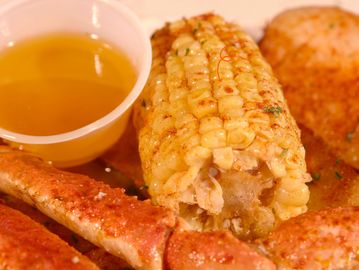 1LB Alaskan Snows crabs legs, 6 Lg Garlic shrimp, corn on the cob, garlic potatoes,