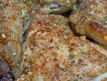 Topped with seasonings our Baked Chicken leg quarters are tender and juicy.